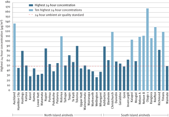 “We are making good progress in many parts of New Zealand in reducing air pollution but there are 10 cities and towns including Auckland and Christchurch that are unlikely to meet the standards by 2013.