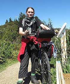 Mia kept a public blog of her journey through New Zealand (translation) on the bike she’d called “pinkie”. In it she spoke about being constantly harassed by drivers honking their horns at her – either as by way of a greeting, often accompanied by a thumbs up sign. These positive honkers appeared to be particularly frequent in underpowered and overloaded vehicles, people on vacation, since the owners had generally learned that they didn’t need to hurry.