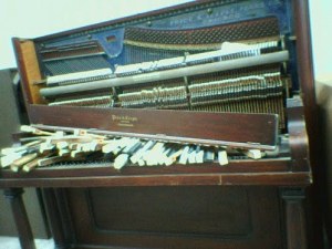 It all arrived 8 weeks later with the piano completley broken, the sofa and chairs had packing tape all around the velour and was unwrapped. Heavier boxes had been packed on top of lighter boxes, so they had all fallen through. The sports equipment was a write off as it was not wrapped in bubble wrap – although it had been when it left the house. All the musical instruments were broken, and because it had been stored for a few weeks in the damp – all the music was green!