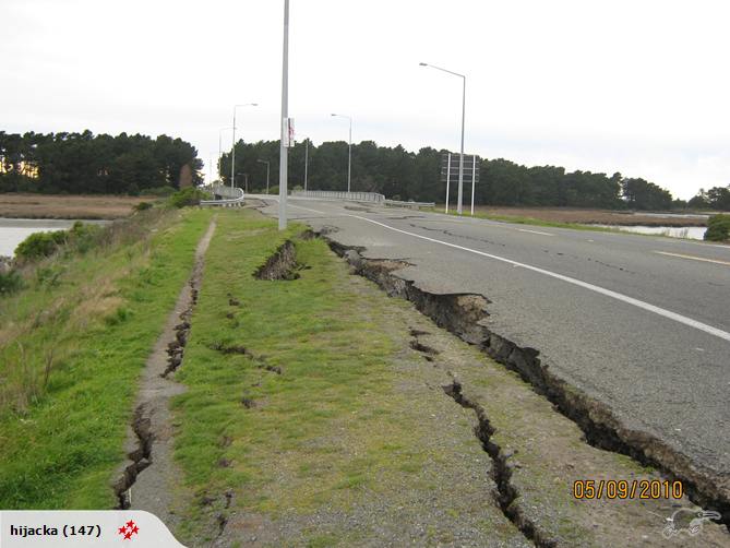 Gaping holes and metre-wide and three metre deep cracks ran through the grounds of some homes and along nearby roads. The bridge across the estuary was closed and badly damaged, he said. ”All the houses have moved, they are on concrete piles and have been pushed up and down.”
