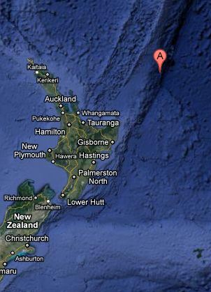 | Distances | 453 km (281 miles) SSE of L’Esperance Rock, Kermadec Islands 512 km (318 miles) NE of Gisborne, New Zealand 680 km (422 miles) ENE of Auckland, New Zealand 913 km (567 miles) NE of WELLINGTON, New Zealand |