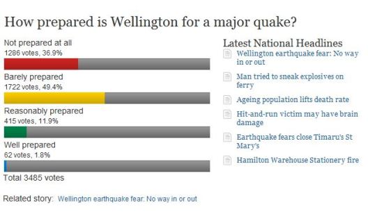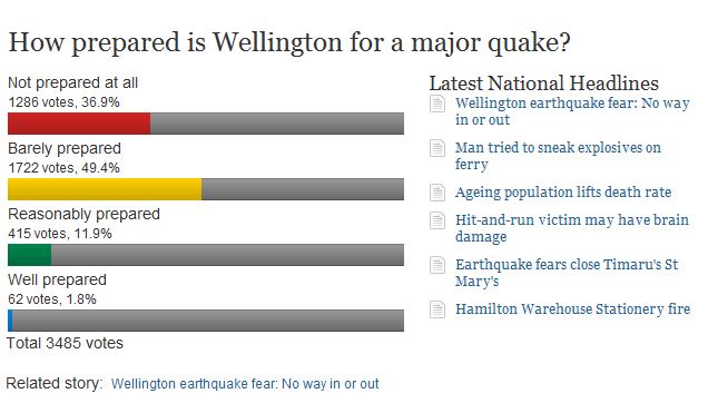 Stuff covered the report and alongside it ran a poll asking people to vote on how well they thought the city was prepared for a major earthquake, the results are disconcerting.