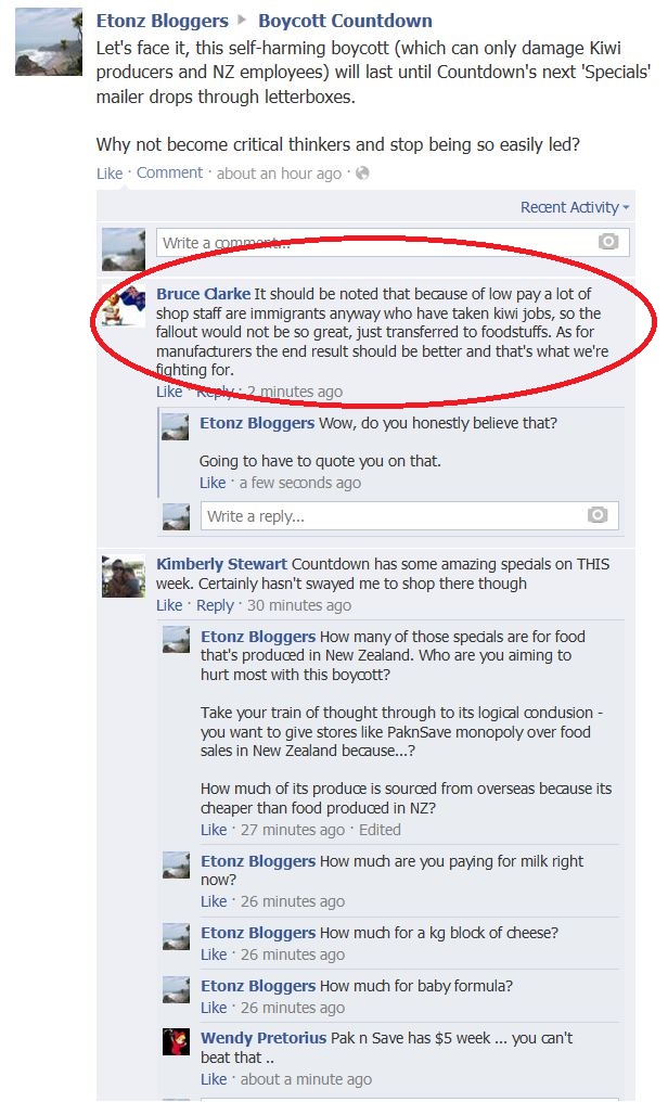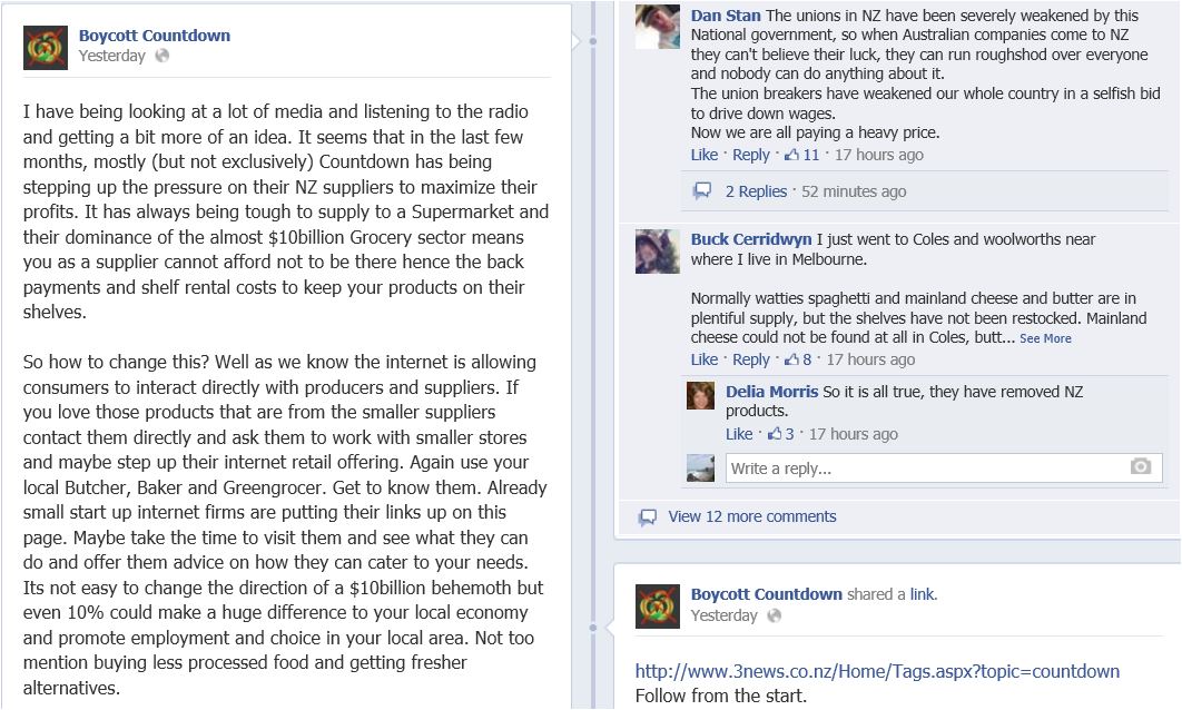 The ‘Boycott Countdown Facebook’ page revealed its xenophobic agenda today with the following comment. The campaign isn’t about protecting Kiwi investments, or safeguarding the livelihood of NZ’s food producers, its xenophobia and narrow minded protectionism – pure and simple:
