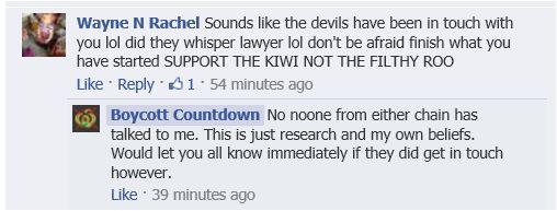 By way of retaliation there now is a movement afoot to boycott Australian owned supermarkets in New Zealand, of which Countdown is one. Furthermore, the ‘battle’ has been taken to Facebook with a hate page called “Boycott Countdown” set-up by an accountant, Nevan Lancaster (below) of Papamoa Beach, New Zealand, whose twitter profile says he’s “traveling and trading around the world” and was “leading a group of business’s suing Swedish club after the Rena grounding.” The page is populated mostly by trolls, spurned on by comments made by Shane Jones under the protection of parliamentary privilege.