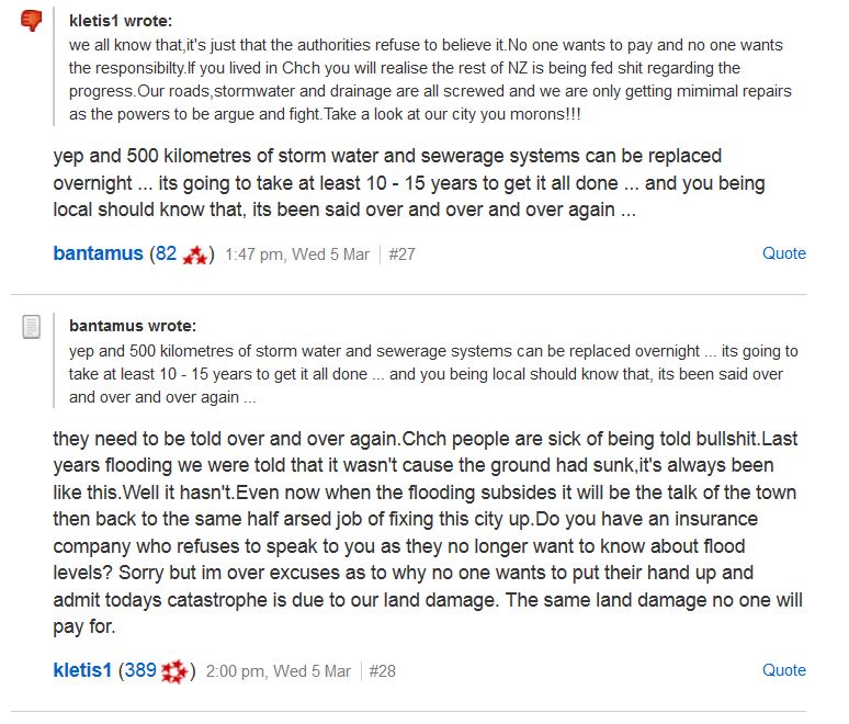 Feelings were understandably running high among weary residents. Three years of living with outstanding repairs to earthquake damage and now this (source Trademe).