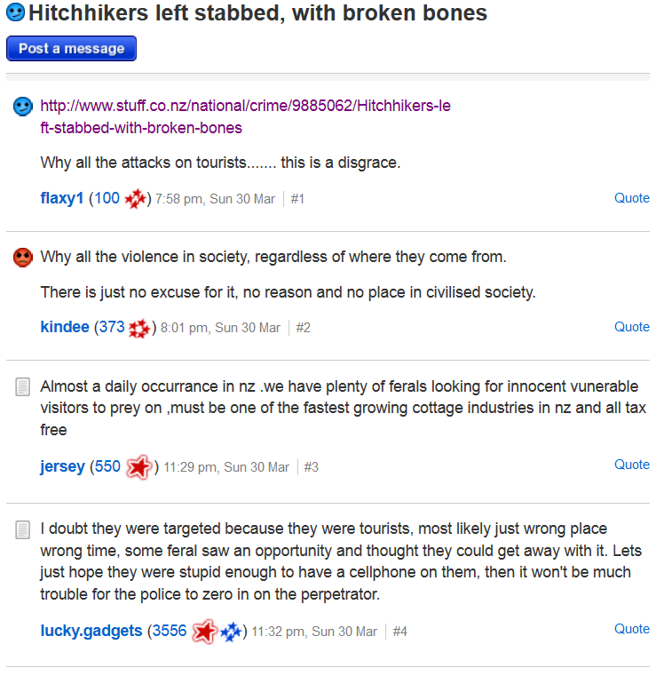 Thinking of emigrating to New Zealand to escape crime in your own country? You may want to avoid frying pan to fire syndrome by ‘liking’ and following The Sensible Sentencing Trust’s Facebook page: https://www.facebook.com/sensiblesentencingtrust.