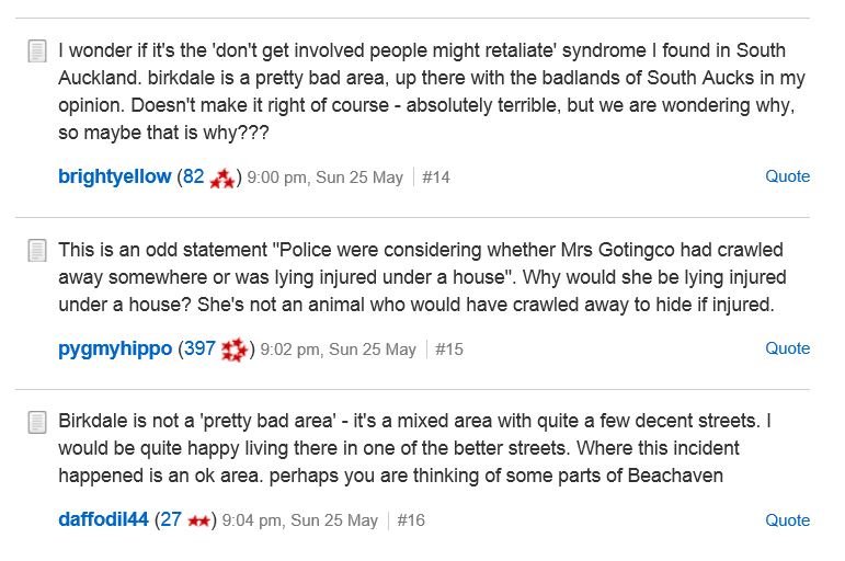 People on the TradeMe.co.nz forum speculated why no-one reported the screams to the police when they were happening: