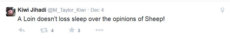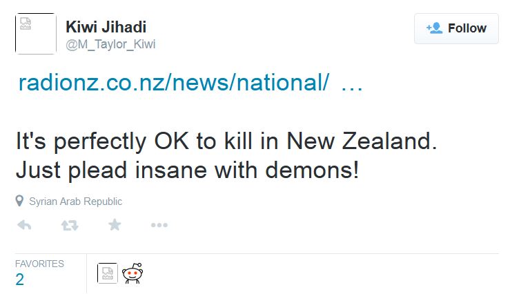 Taylor once used a Radio NZ story to justify killing in New Zealand. He tweeted