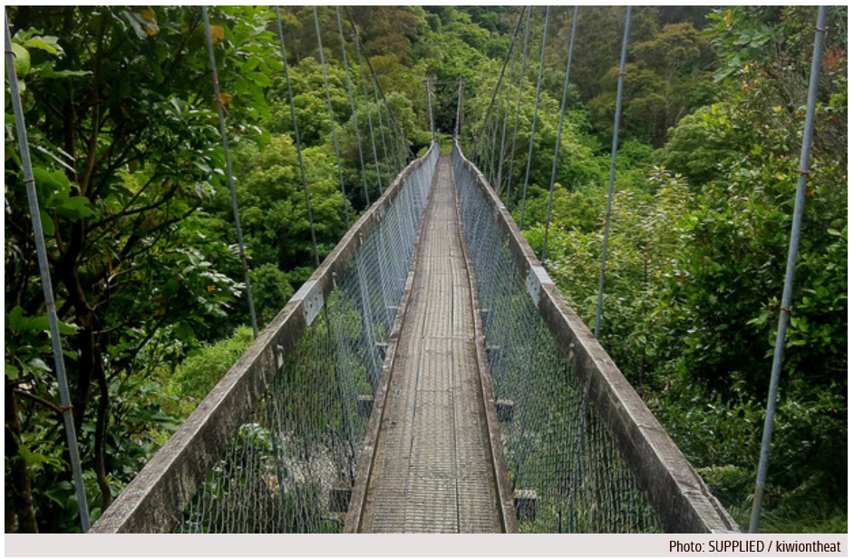 Four French tourists were fortunate to escape serious injury when the Hopu Ruahine bridge on the Lake Waikaremoana Track collapsed beneath them on 3 September. The group sustained injuries after they plunged 8.5 metres when the Waikaremoana Track Bridge gave way. For an update to this story on 9 Oct 2015 click here