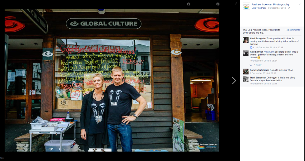14 December 2016: Today we learned of the departure of another small business from Kaikoura – Global Culture.