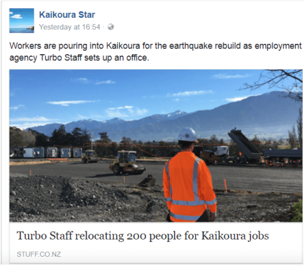 Turbo Staff is said to be “pouring” 200 people into the area for Kaikoura jobs…